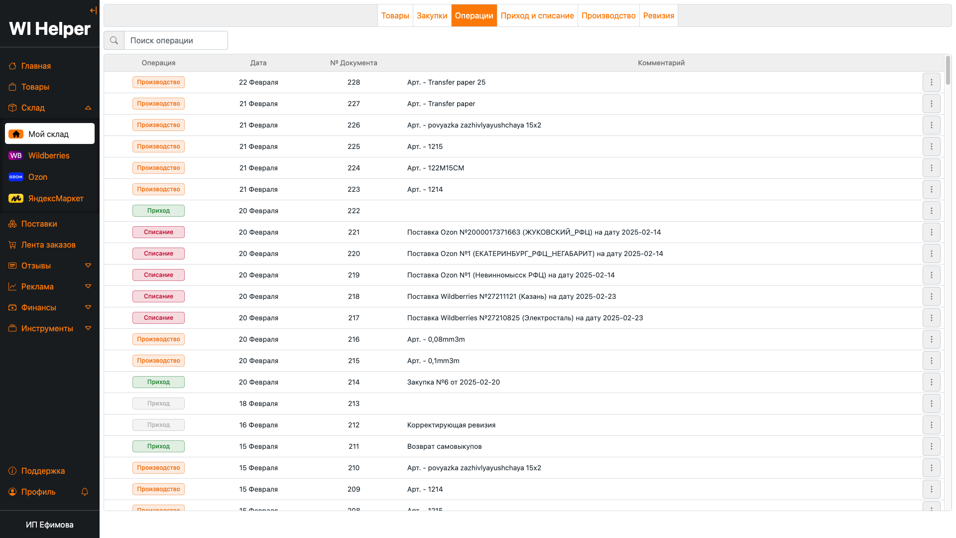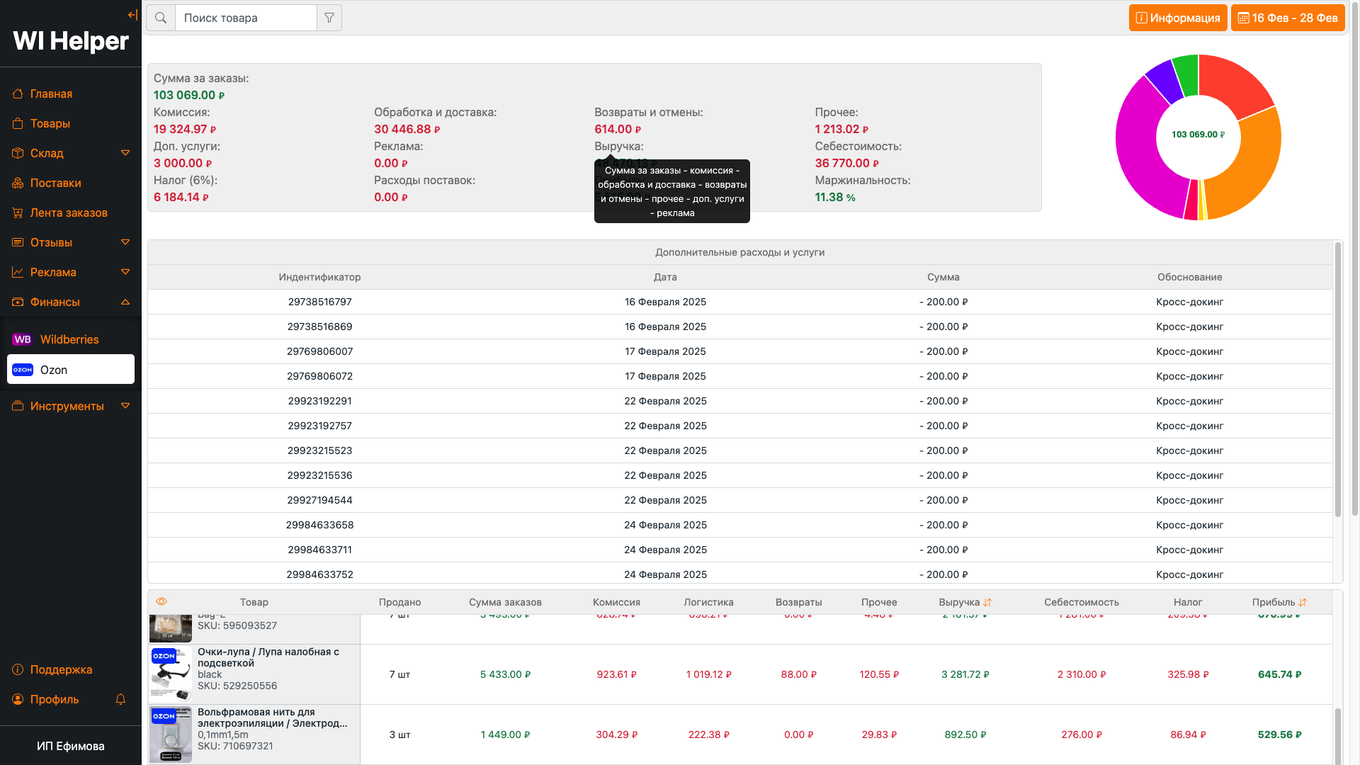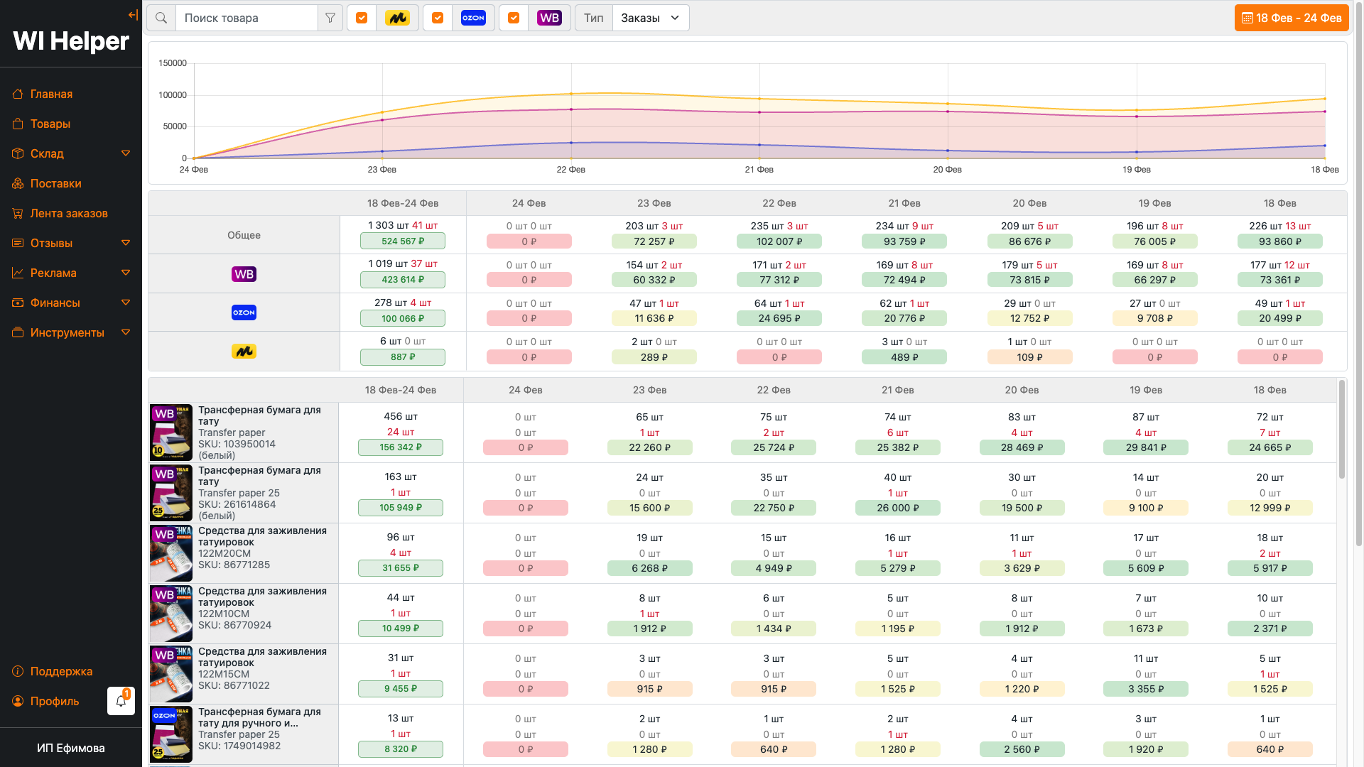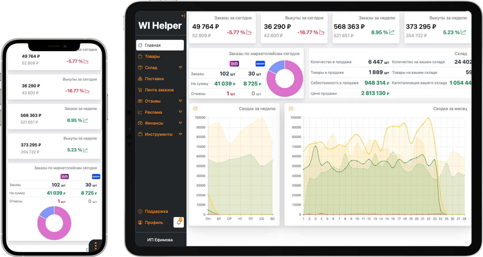 Инструменты для внутренней аналитики, управления и автоматизации кабинетов на маркетплейсах Wildberries, Ozon и ЯндексМаркет в одном месте